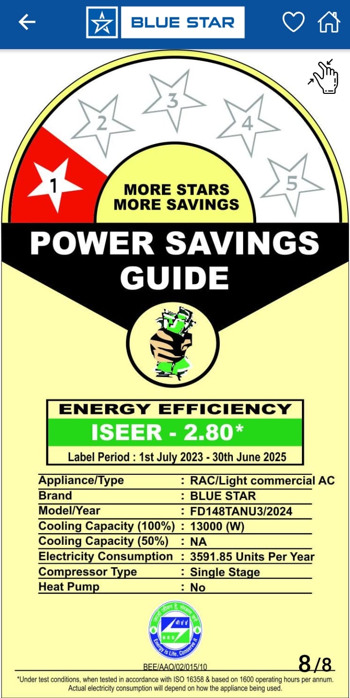 | Star Rating - As Per BEE | 1 Star |